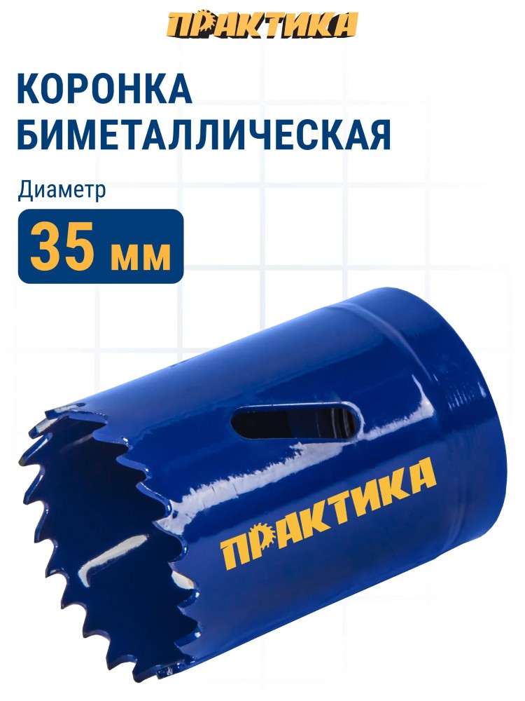 Биметаллическая коронка "ПРАКТИКА" диаметром 35 мм — идеальный выбор для аккуратного и точного сверления отверстий! Подходит для работы по дереву, металлу и пластику. Благодаря качественной конструкции обеспечивает плавное сверление без сколов и трещин. Прочная конструкция и надежная фиксация победитового напыления продлевают срок службы изделия. Идеально подходит для ручного электроинструмента. Сделано в Китае.