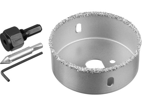 Коронка-чашка ЗУБР "ПРОФЕССИОНАЛ" c карбид-вольфрамовым нанесением, 76 мм, высота 25 мм, в сборе с державкой и сверлом 33360-076_z01, применяется при резке гипсокартона, кафельной и керамической плитки, кирпича, ячеистого бетона. Аккуратное сверление материала без трещин и сколов. Новейшая технология автоматического нанесения и спаивания твердосплавной крошки обеспечивает надежное соединение. Равномерное нанесение твердосплавных режущих элементов обеспечивает аккуратное сверление без трещин и сколов.
