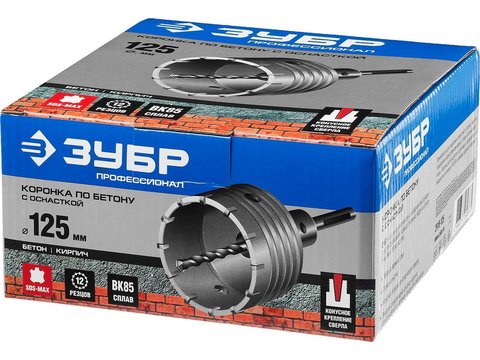 Коронка по бетону ЗУБР "Профессионал" с державкой SDS-Max, 125 мм