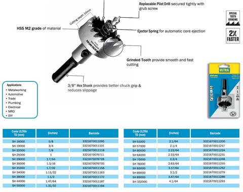 Подходит для работы со сталью, обладает высокой износостойкостью благодаря материалу изготовления — быстрорежущей стали (HSS). Закаленный зубья обеспечивают долгий срок службы и сохранение рабочих характеристик даже при интенсивной эксплуатации. Удобная длинная ручка облегчает процесс сверления и повышает точность работ.