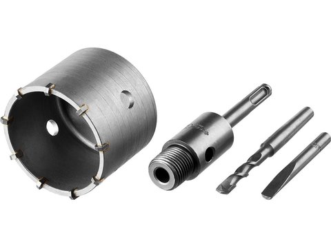 Коронка ЗУБР буровая, коническая посадка центрирующего сверла, SDS-Plus хвостовик, в сборе, 73мм 2918-73_z01, применяются для выполнения промышленных работ по сверлению бетона, кирпича, природного и искусственного камня, а также плотных известняков. Твердосплавные зубья из сплава ВК85. Буровая коронка с полной оснасткой. Коническое соединение с центрующим сверлом. Спиралевидная резьба коронки для улучшенного пылеудаления продуктов сверления.