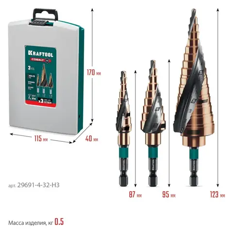 Представляем вашему вниманию высококачественный инструмент от известного бренда Kraftool — набор из трех кобальтовых сверл Cobalt (арт. 29691-4-32-H3). Изделия прошли процедуру азотирования, что придает им дополнительную твердость и долговечность. Винтовая спираль обеспечивает эффективное удаление стружки во время работы, увеличивая производительность процесса сверления. Данный комплект станет незаменимым помощником как профессионалам, так и любителям ремонтных работ различной сложности дома или на даче.