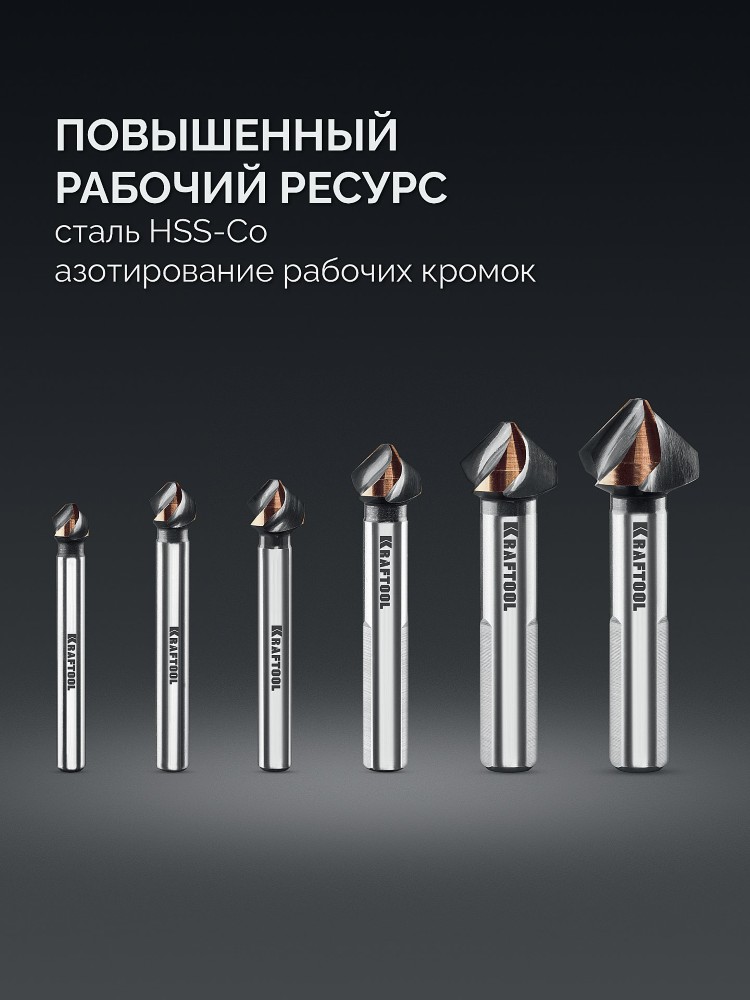 Профессиональный набор из 6 зенковок KRAFTOOL EXTREME Co5-A – ваш надежный помощник в создании идеальных крепежных отверстий! Ультрапрочная сталь M35 и уникальная U-образная спираль обеспечивают долговечность и превосходное качество работы. Подходит для винтов М3–М10. Удобная упаковка позволяет всегда иметь под рукой нужный размер. Выполняйте работу быстро и уверенно вместе с KRAFTOOL!