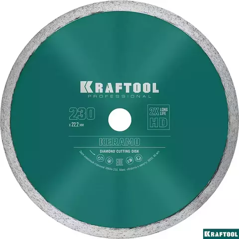KRAFTOOL Ø 230Х22.2 мм, алмазный, сплошной, по керамограниту, керамической плитке диск отрезной KERAMO 36684-230.