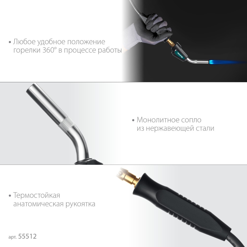 KRAFTOOL KS-8000, со шлангом 1.4м с пьезоподжигом на баллон турбо нагрев + 30% 2000°C, Газовая горелка Blue Fire (55512)