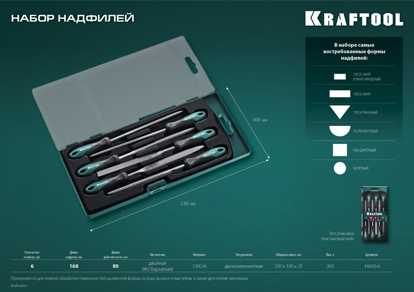KRAFTOOL набор надфилей 6 шт 160 мм, в коробке (16030-6).