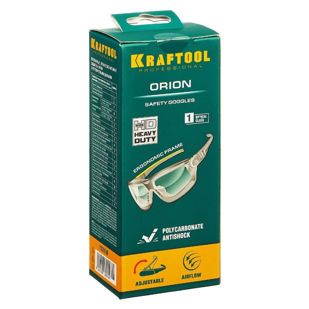 Kraftool Orion — профессиональные защитные очки открытого типа из серии must-have для мастеров и профессионалов! Очки выполнены из ударопрочного стекла с надежным антибликовым покрытием. Прозрачная конструкция обеспечивает широкий угол обзора без искажений. Система непрямой вентиляции предотвращает запотевание, а эргономичный дизайн гарантирует комфорт даже при длительной работе. Изящно смотрятся, надежно защищают! Ваш взор будет под надёжной охраной!