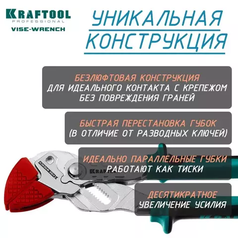 Клещи переставные (гаечный ключ) с защитными накладками KRAFTOOL 250 мм Vise-Wrench-Профессионалный инструмент с постоянно параллельными губками.