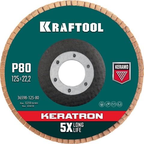 Круг лепестковый керамический торцевой по нержавеющей стали 125х22,2мм P80 KRAFTOOL KERATRON