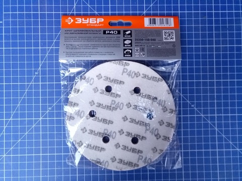Круг шлифовальный ЗУБР "СТАНДАРТ" из абразивной бумаги на велкро основе, 6 отв., Р40, 150мм, 5шт.