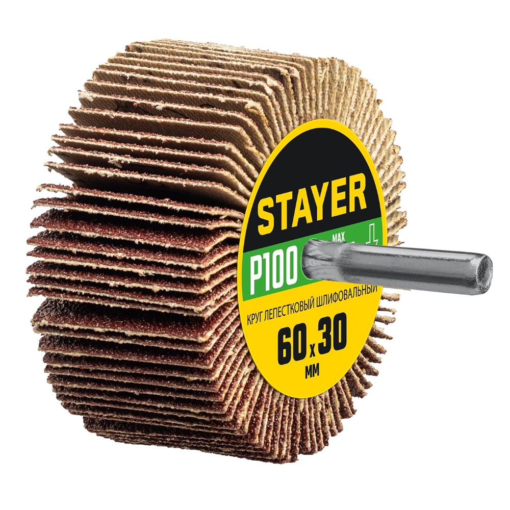 STAYER d 60 x 30 мм, P100, на шпильке d 6 мм, круг шлифовальный лепестковый (36608-100)