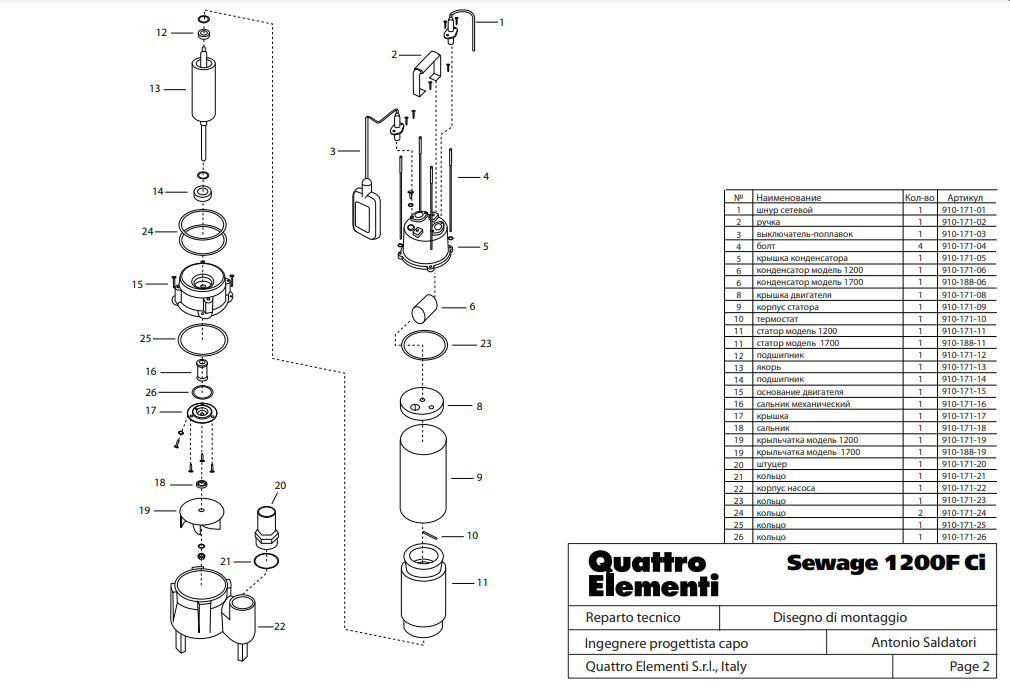 Крыльчатка QUATTRO ELEMENTI Sewage 1200F Ci (910-171-19)