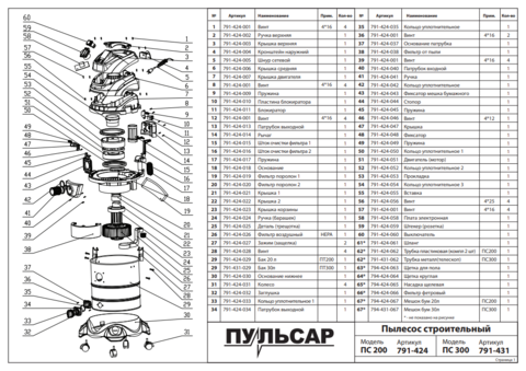 Крышка ПУЛЬСАР ПС 200 / ПС 300 верхняя (791-424-003)