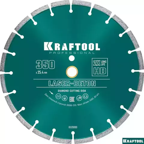 KRAFTOOL Ø 350Х25.4 мм, алмазный, по бетону и камню, диск отрезной LASER-BETON 36686-350.