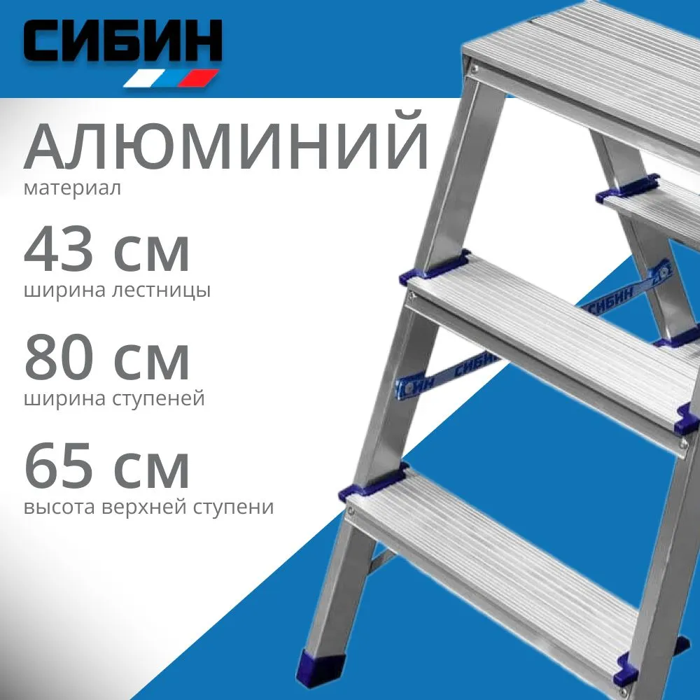 Представляем вашему вниманию универсальную лестницу-стремянку от бренда "СИБИН" (артикул 38825-03). Подходит как для домашнего использования, так и для небольших ремонтных работ! Три надежные ступеньки выполнены из качественного алюминия – легкого, прочного материала, устойчивого к коррозии. Компактные габариты позволяют без труда хранить стремянку даже в небольшом пространстве. Удобная и безопасная конструкция станет вашим незаменимым помощником дома и на даче!