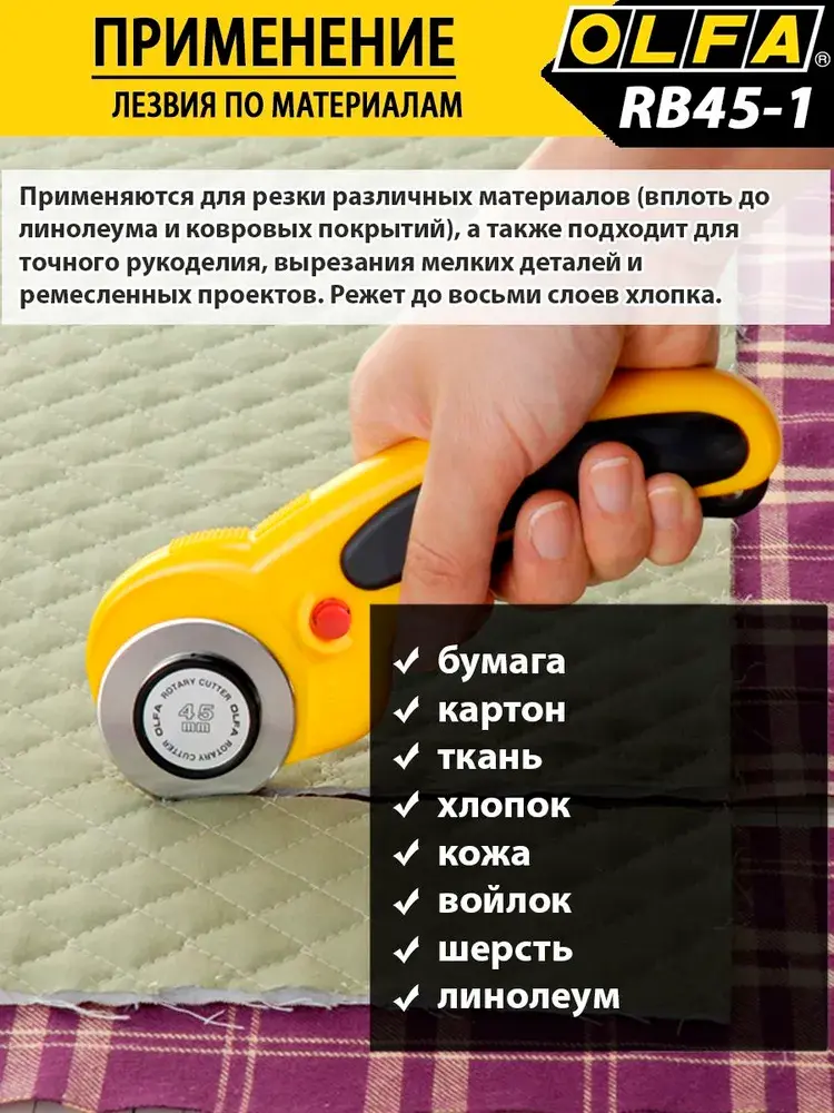 Самое популярное лезвия OLFA RB45-1 может справиться с любой задачей, создавая точные края и чистые разрезы. Лезвия изготовлены из высококачественной легированной вольфрамом стали и профессионально заточены для обеспечения превосходной остроты и непревзойденной долговечности режущей кромки. Поставляются в пластиковом футляре для хранения и утилизации.