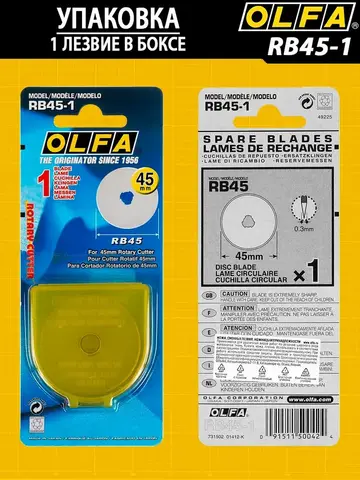 Лезвие OLFA круглое для RTY-2/G,45-C, 45х0,3мм, 1шт
