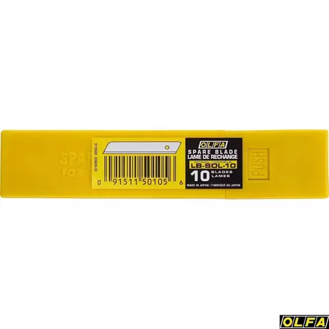 Лезвие несегментированное OLFA OL-LB-SOL-10, предназначено для реза различных материалов: бумаги, картона, обоев и пленки. Японская инструментальная сталь премиум-класса. Подходит для большинства ножей 18 мм.