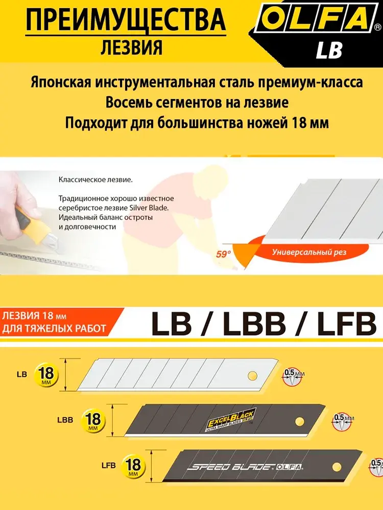 OLFA 18 мм, 10шт, лезвие сегментированное OL-LB-10.