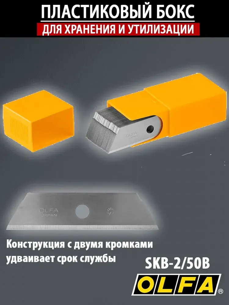Надежные и острые безопасные лезвия OLFA SKB-2/50B с двумя кромками. Лезвия изготовлены из высококачественной японской инструментальной стали и профессионально заточены для обеспечения превосходной остроты и непревзойденной долговечности режущей кромки.