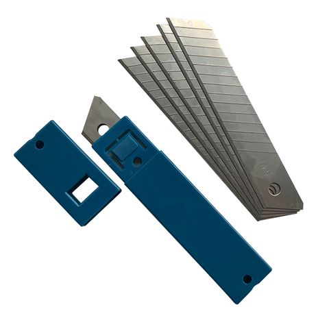 Лезвия сменные для ножа РемоКолор 19-2-402 используются как сменные рабочие элементы в выдвижных инструментах. Разделены на сегменты для отламывания пассатижами либо специальным приспособлением. По мере потери режущих качеств острой кромки полотно не заменяется целиком, а удаляется затупившийся сегмент. После использования всех сегментов в нож вставляется новое полотно. Сегментированные лезвия применяют для резки картона, бумаги, мягкого пластика, обоев, упаковочного скотча, пенопласта.