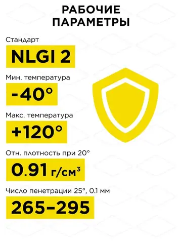 Многоцелевая, антифрикционная, водостойкая смазка с ЕР присадками. Применение: редукторы и гибкие валы мотокос, триммеров и кусторезов; роликовые и игольчатые подшипники (сепараторы чашек сцепления); для хвостовиков SDS-plus и SDS-MAX буров перфораторов. Для предотвращения "прикипания" резьбовых соединений. Диапазон рабочих температур -40/+120 С. Относительная плотность при 20 С 0,91 г/см3