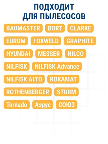 Специально разработан для продолжительной службы и надежного использования! Подходит для моделей FUBAG, REDVERG, STATUS и других объемами до 32 литров. Синтетический материал обеспечивает прочность и долговечность. Упаковка по 2 штуки – выгодно и удобно. Идеальный выбор практичных хозяев! Купить аксессуары для уборки еще никогда не было так просто и экономично!