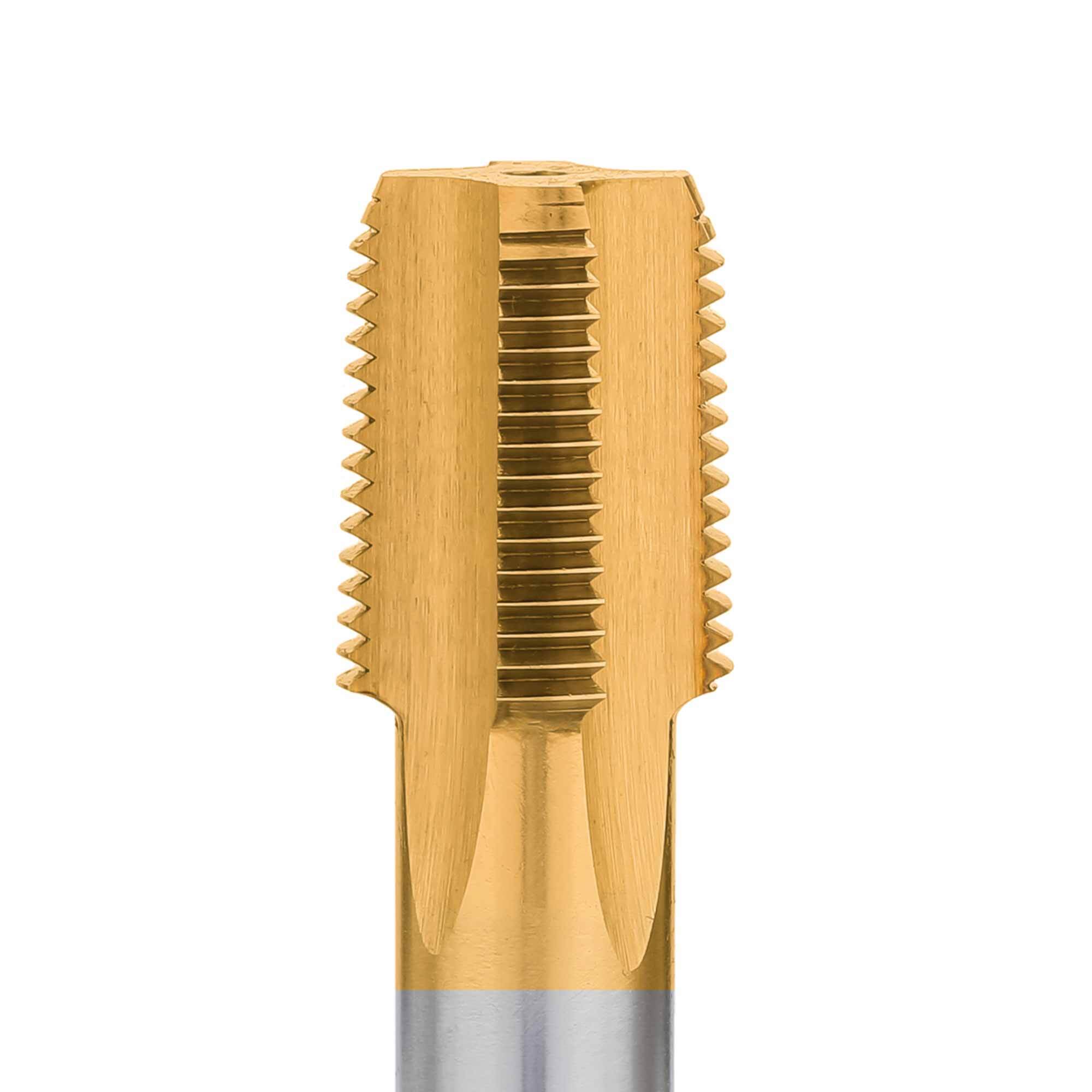 Прочный метчик для надежного резьбового соединения** Преимущества: 1. Изготовлен из высококачественной стали HSS-TiN, обеспечивающей долговечность и точное сверление. 2. Угол заточки 60 градусов для оптимальной работы без заеданий и деформаций. 3. Коррозионная стойкость благодаря покрытию TiN – идеально подходит для влажных условий эксплуатации. 4. Глубина прохода 100 мм позволяет работать даже со сложными материалами. 5. Идеальное соответствие стандарту NPT-Threads, что гарантирует совместимость с различными видами оборудования.