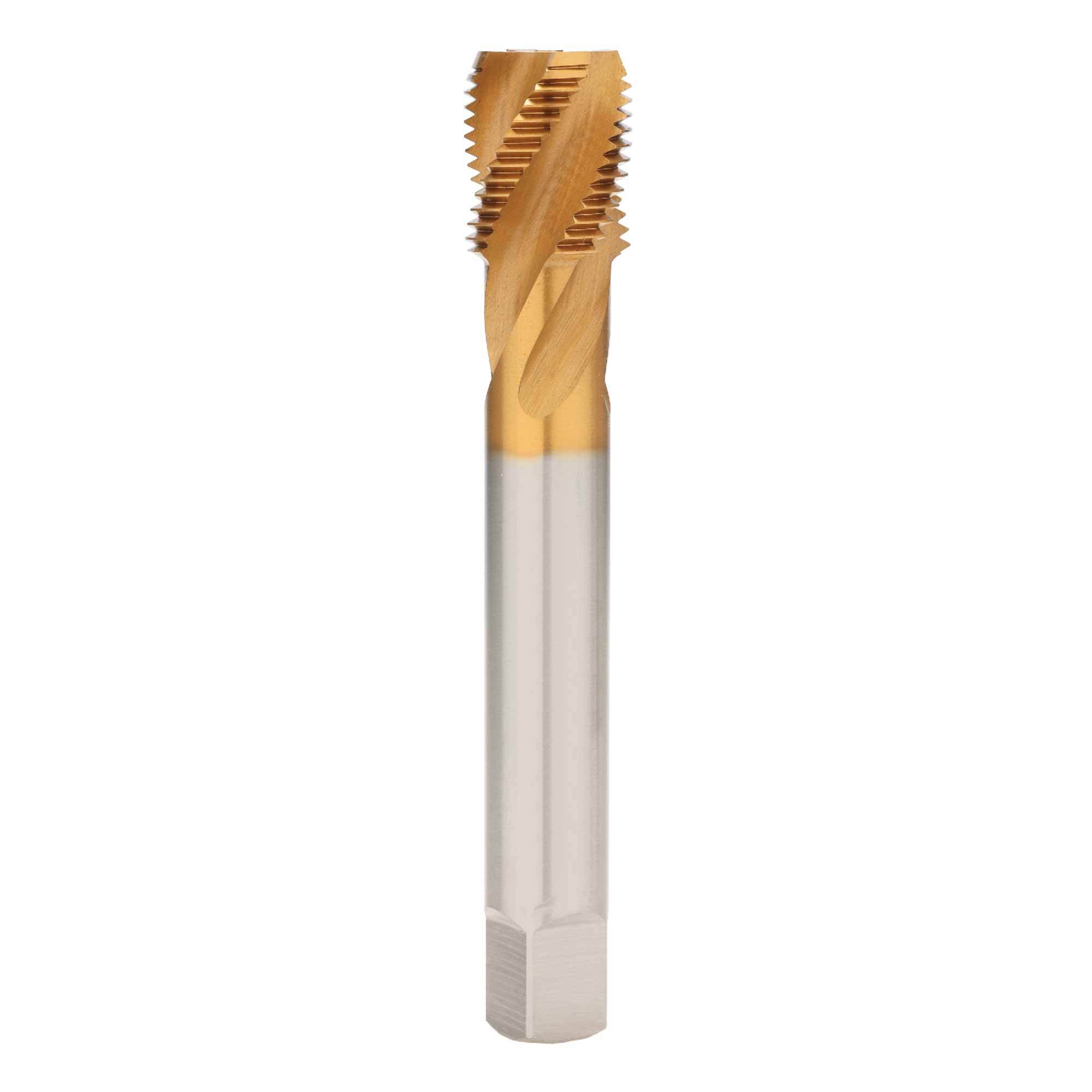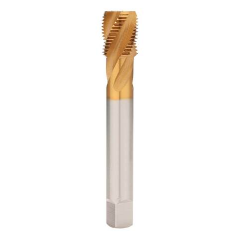 Покрытие TiN (нитрид титана) увеличивает термостойкость инструмента до 600°С и микротвердость до 20-25 ГПа., а низкий коэффициент трения 0,4 уменьшает возможность возникновения вибраций и холодных наплавов тем самым повышает надежность инструмента. Резьба нарезается за один этап, машинным способом. Форма заборной части C (2-3 ниток) - для глухих и сквозных отверстий.