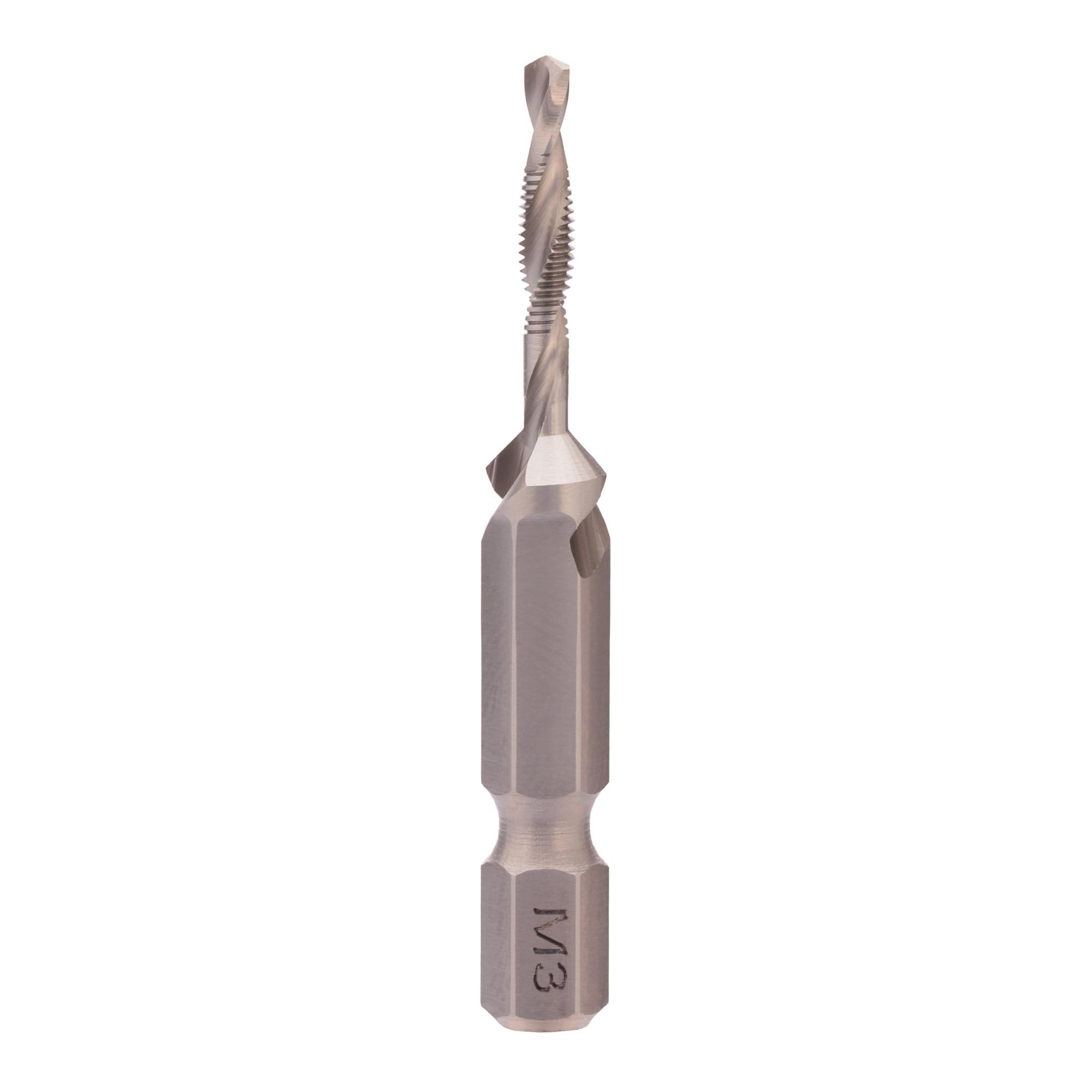 Метчик для шуруповерта Ruko 3 в 1 6h HSS М3х0,5мм Hex-1/4" 270014. Метчик машинный комбинированный с ¼" шестигранный хвостовиком (биты) для сквозных отверстий и отверстий под резьбу. Комбинированный метчик идеально подходит для работы по листовому материалу при помощи дрели.