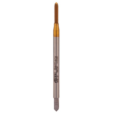 Метчик М 2,0х0,4 (Машинный, накатной) DIN371 HSSE-TiN 6HX C/2-3P 45мм a=2,1 Voelkel 35527 предназначен для создания внутренней резьбы в различных материалах. Метчик отличается от других тем, что в процессе изготовления резьбы происходит не резка материала, а его уплотнение тем самым не повреждается структура волокна. Не образуется стружка, а значит не требуется создание условий для ее отведения.
