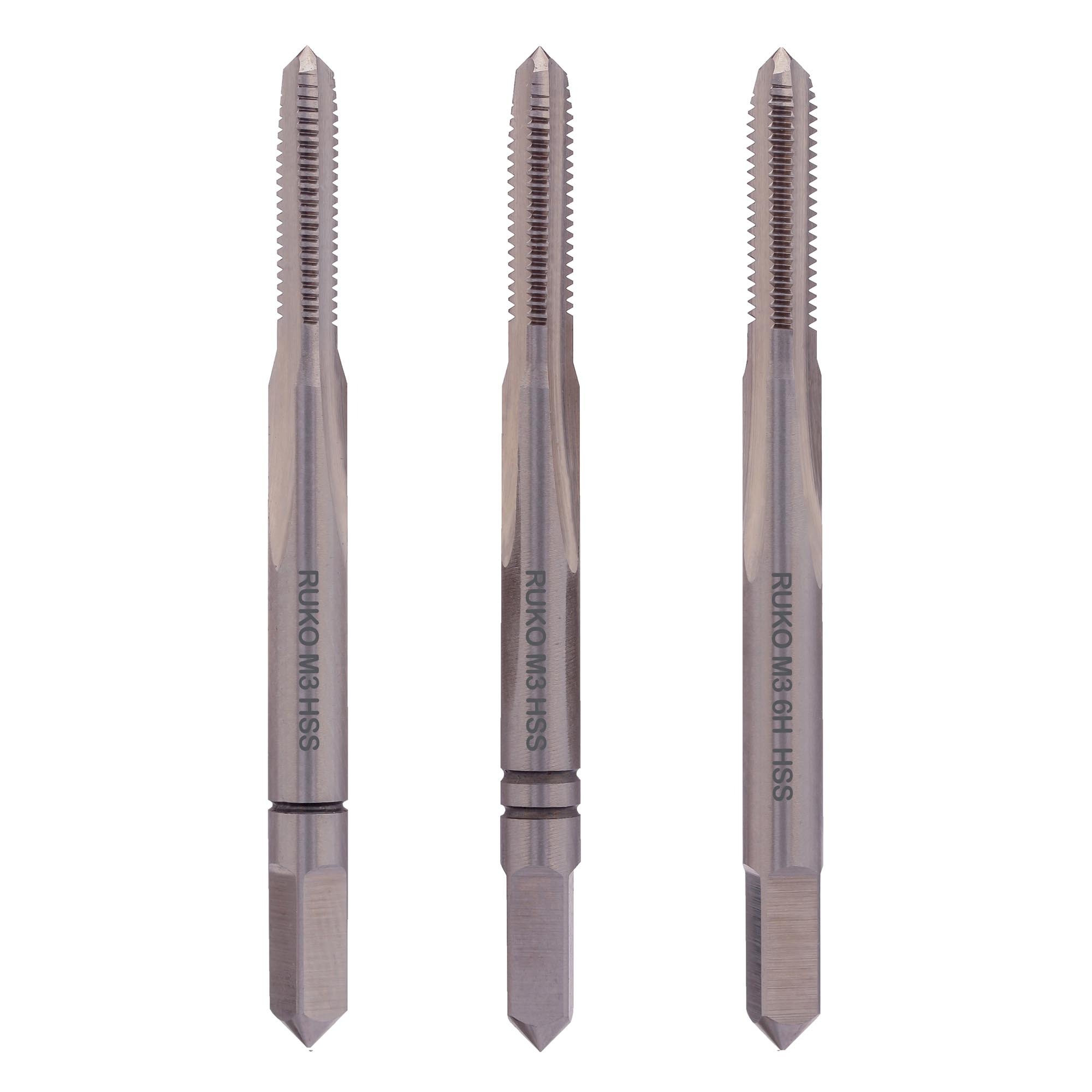 Набор метчиков из 3-х шт. Ruko предназначен для создания внутренней левой метрической резьбы с углом профиля 60 градусов в различных материалах. Изготовлен из высококачественной быстрорежущей стали HSS-G, которая гарантирует прочность и износостойкость.