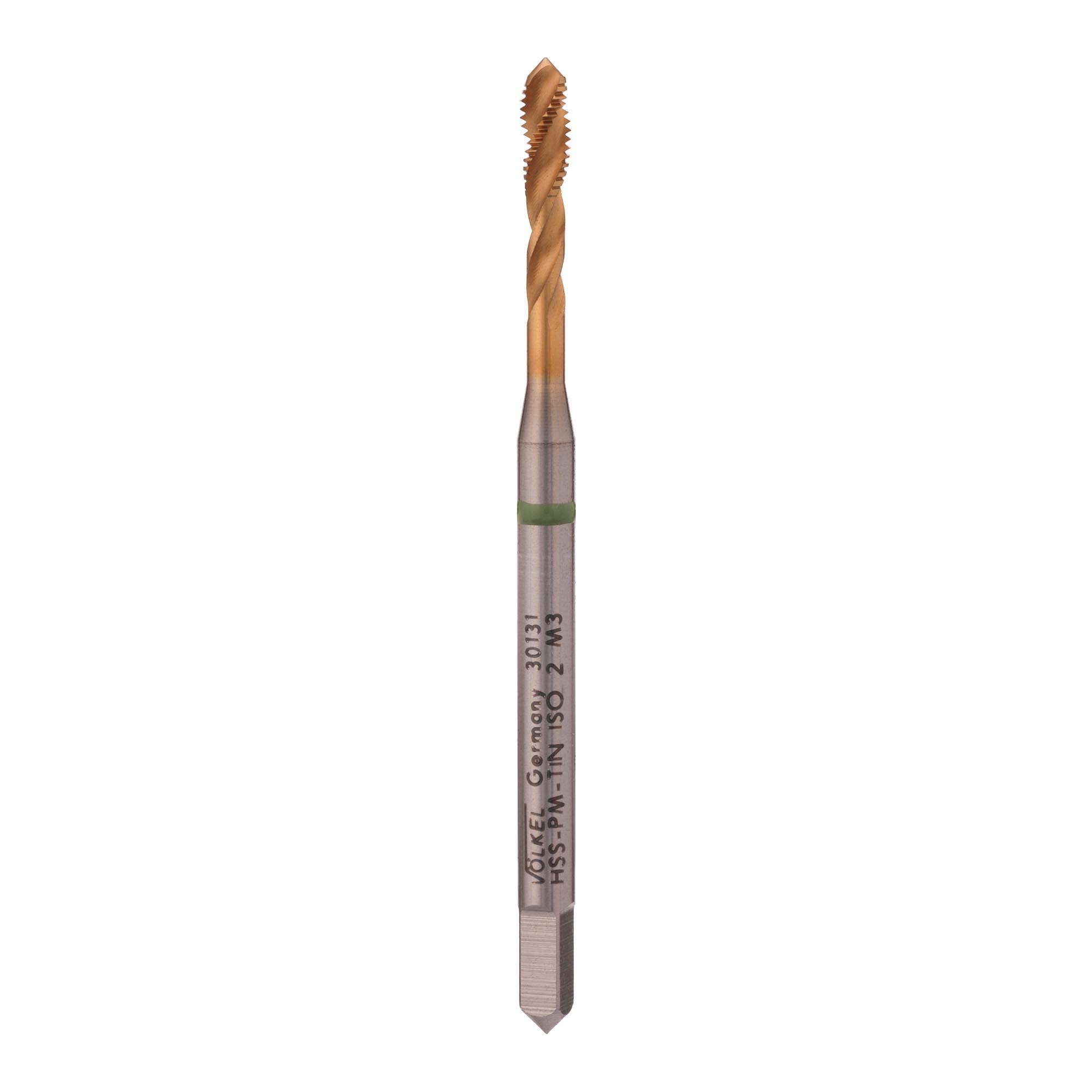 Машинный метчик VOELKEL с винтовой канавкой, предназначен для создания внутренней резьбы в различных материалах.