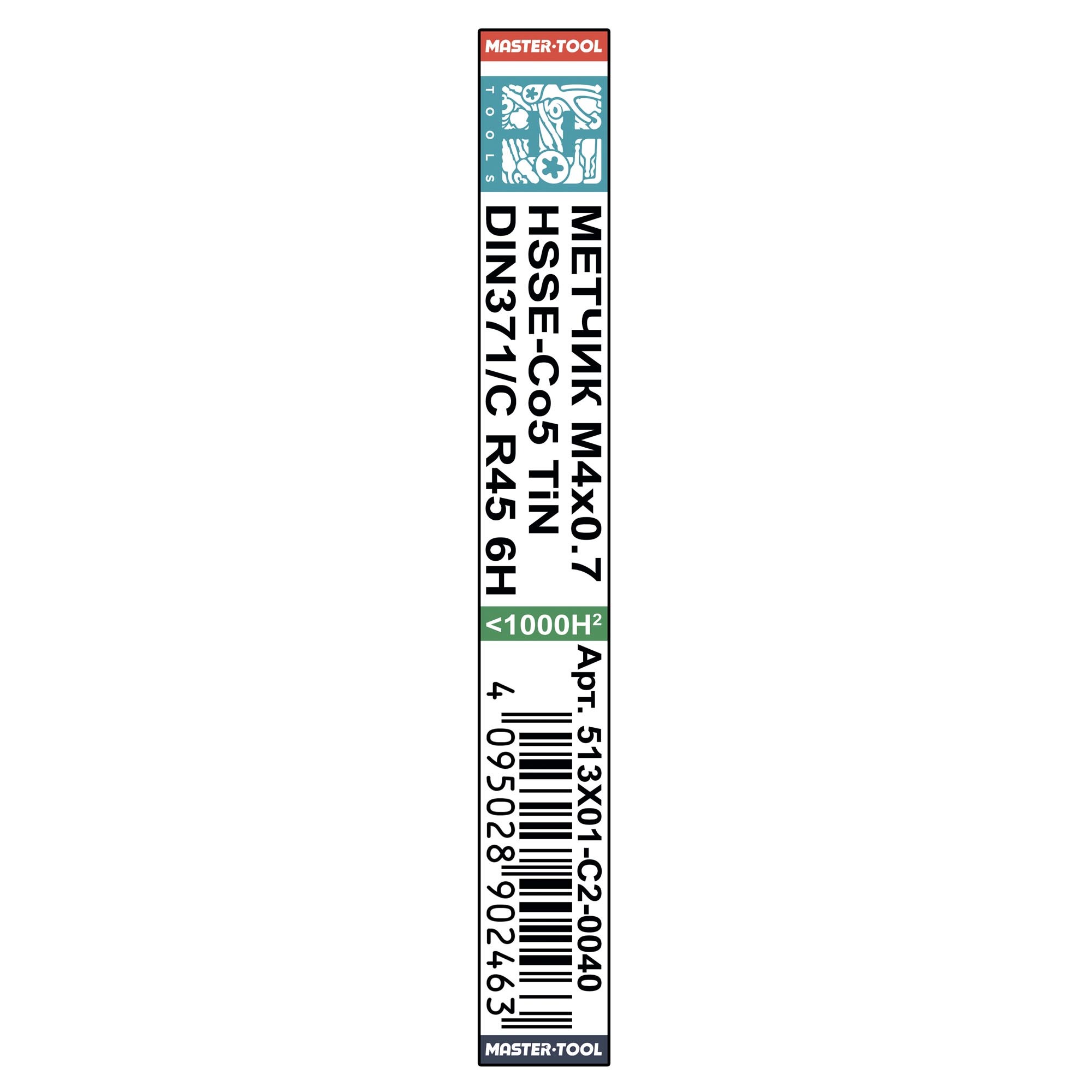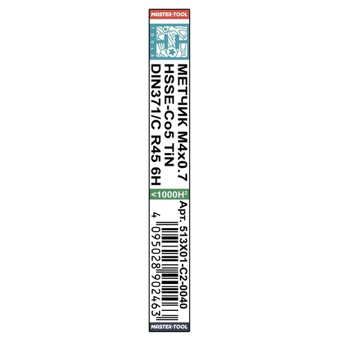 Метчик М 4,0х0,7 (Машинный, винт.) DIN371 HSSE-TiN 6h C/2-3P R45 63мм a=3,4 H-Tools 513X01-C2-0040
