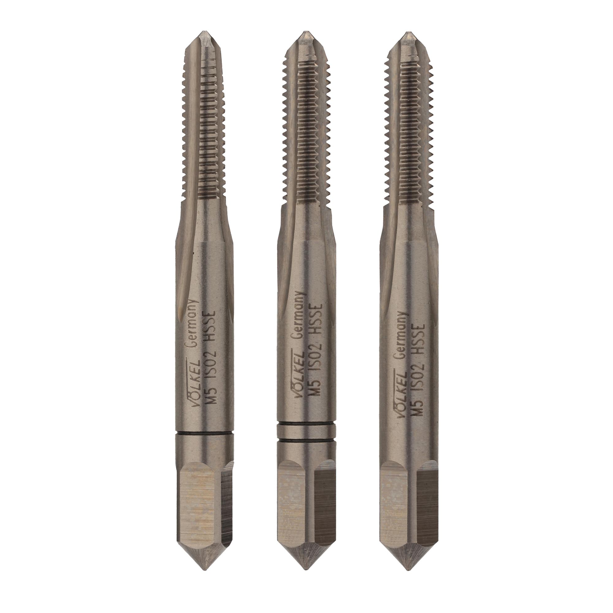 Набор ручных метчиков Volkel M5x0.8, DIN 352, HSS-E, комплект из 3 штук 57334 V57334 применяется для нарезания резьбы в сталях с пределом прочности до 1.200 H/мм, высоколегированных сталях и других материалах. Подходит для глухих отверстий. Инструмент выполнен из высококачественной быстрорежущей стали, легированной различными компонентами. Материал отличается высокой прочностью и долговечностью. Метчики легко устанавливаются в метчикодержателе необходимого размера. Использование комплекта метчиков позволяет получить высокое качество резьбы.