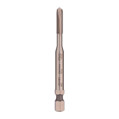 Метчик имеет 6-гранный хвостовик 1/4", что позволяет использовать в качестве держателя дрель-шуруповерт, а так же стандартные магнитные держатели для бит.