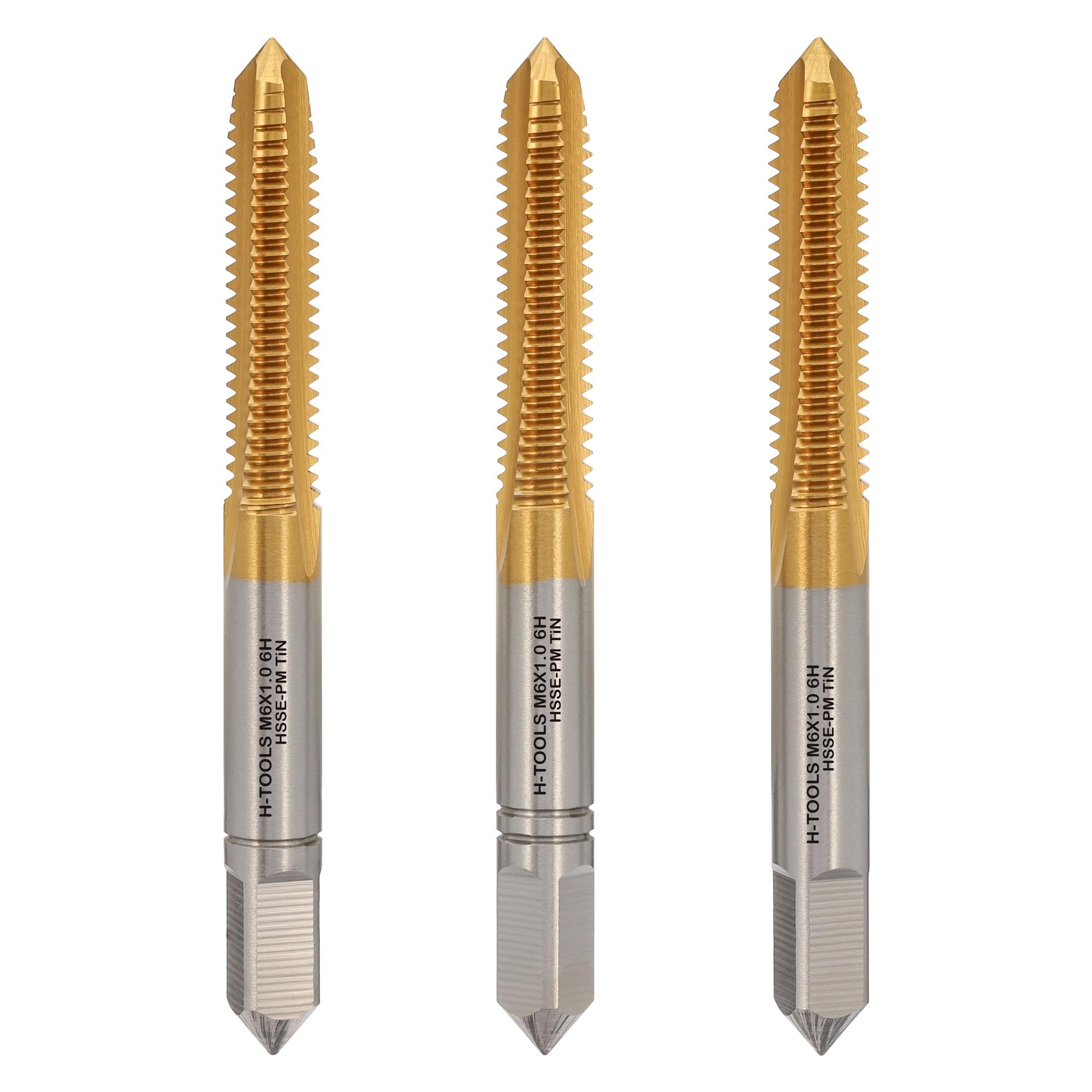 Метчик М 6,0х1,0 (Комплект 3шт) DIN352 HSSEPM-TiN 6HX 50мм a=4,9 H-Tools PRO 230060PMHT
