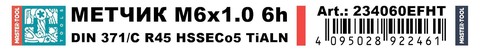 | Шаг резьбы (мм, ниток/дюйм) | 1 |