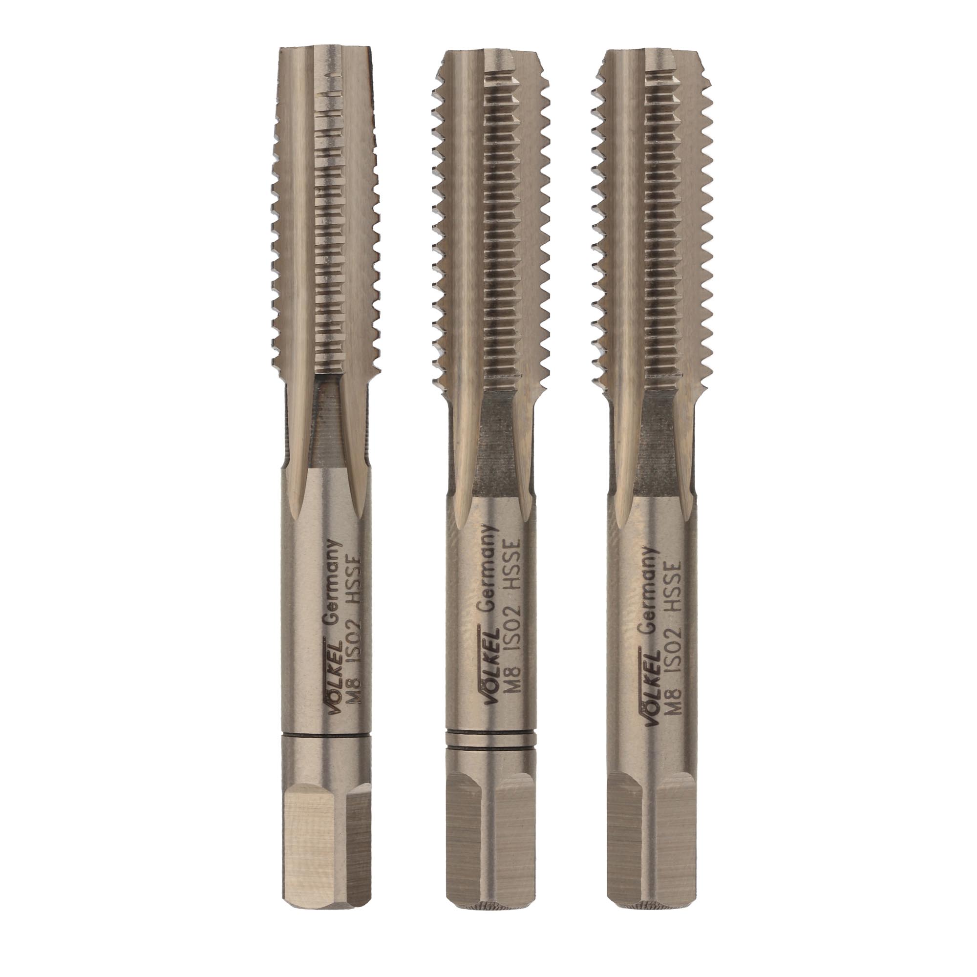 Набор ручных метчиков Volkel M8x1.25, DIN 352, HSS-E, комплект из 3 штук 57342 V57342 применяется для нарезания резьбы в сталях с пределом прочности до 1.200 H/мм, высоколегированных сталях и других материалах. Подходит для глухих отверстий. Инструмент выполнен из высококачественной быстрорежущей стали, легированной различными компонентами. Материал отличается высокой прочностью и долговечностью. Метчики легко устанавливаются в метчикодержателе необходимого размера. Использование комплекта метчиков позволяет получить высокое качество резьбы.