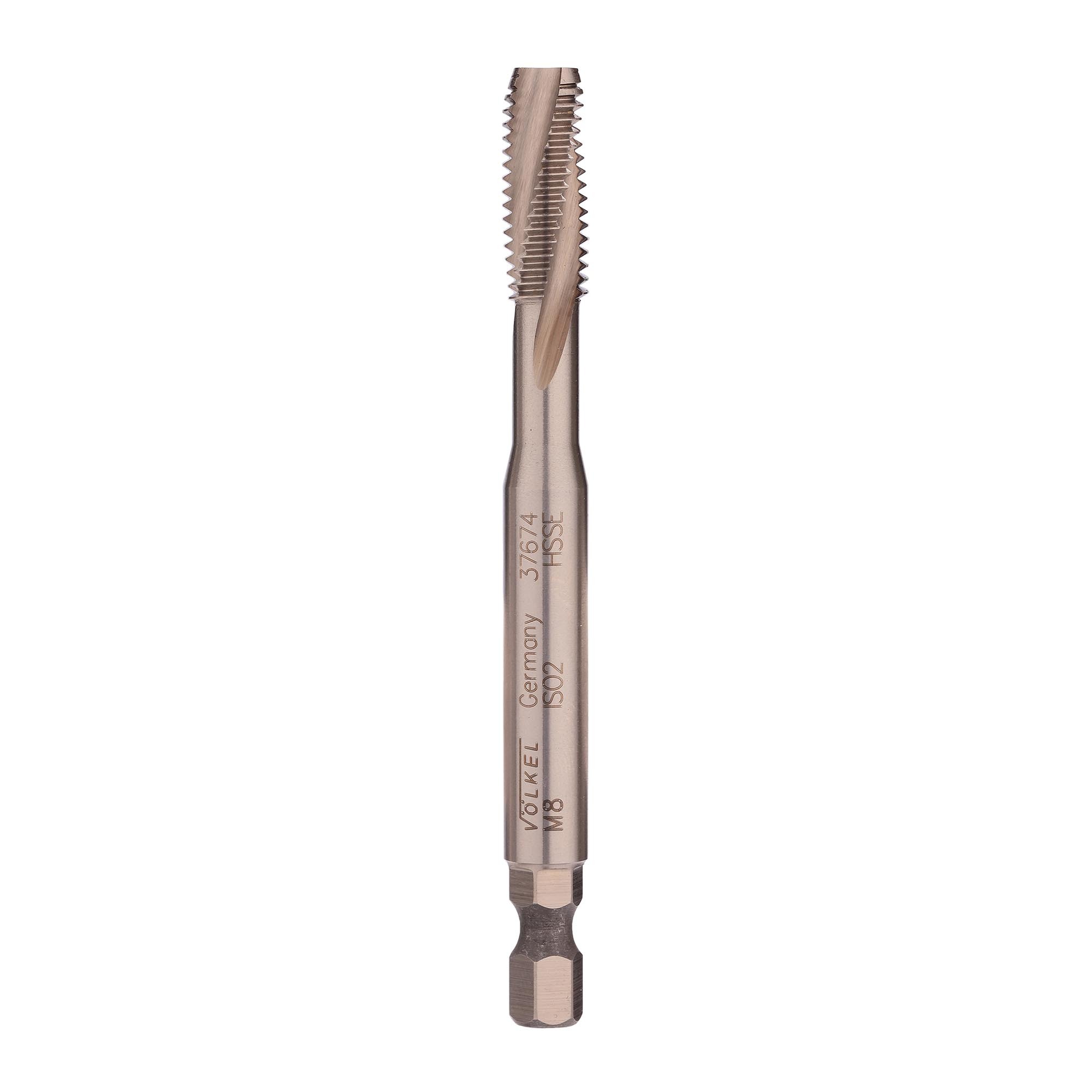 Метчик имеет 6-гранный хвостовик 1/4", что позволяет использовать в качестве держателя дрель-шуруповерт, а так же стандартные магнитные держатели для бит. Спиральная канавка с углом наклона 15° обеспечивает оптимальное стружкоудаление.