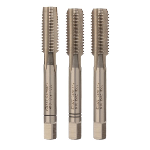 Набор ручных метчиков VOELKEL M10x1.5, DIN 352, HSS-E, комплект из 3 штук 57346 V57346 применяется для нарезания резьбы в сталях с пределом прочности до 1.200 H/мм, высоколегированных сталях и других материалах. Подходит для глухих отверстий. Инструмент выполнен из высококачественной быстрорежущей стали, легированной различными компонентами. Материал отличается высокой прочностью и долговечностью. Метчики легко устанавливаются в метчикодержателе необходимого размера. Использование комплекта метчиков позволяет получить высокое качество резьбы.