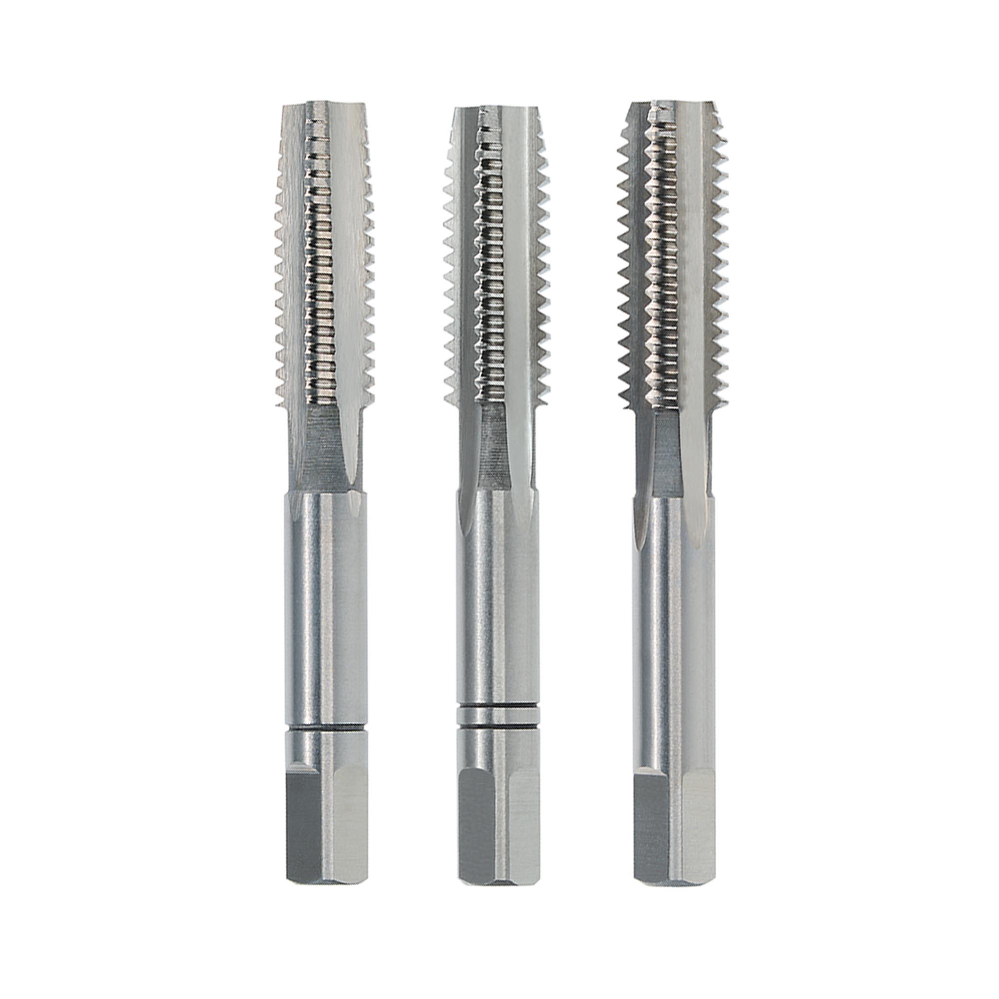Формирование резьбы происходит в 3 этапа: сначала черновым метчиком №1 (6-8 ниток на заход), затем чистовым №2 (4-5 ниток на заход) и финишным (2-3 нитки на заход). Благодаря этому, снижается усилие, прилагаемое к каждому метчику, а получаемая резьба более точная и чистая.