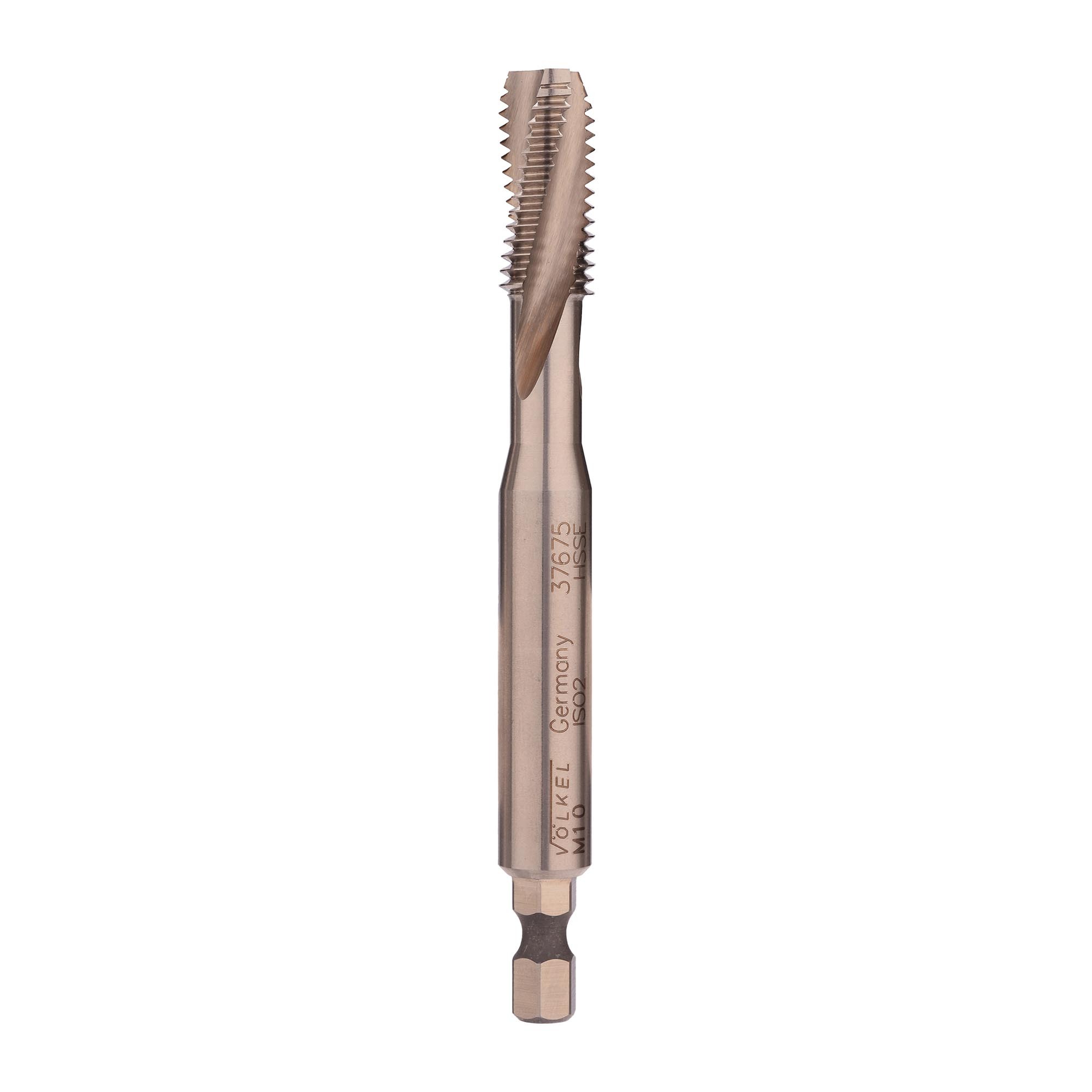 Метчик имеет 6-гранный хвостовик 1/4", что позволяет использовать в качестве держателя дрель-шуруповерт, а так же стандартные магнитные держатели для бит. Спиральная канавка с углом наклона 15° обеспечивает оптимальное стружкоудаление.