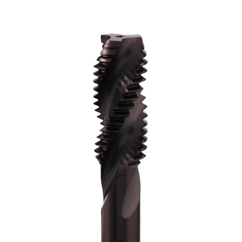 Благодаря покрытию TiAlN (нитрид титана-алюминия) трение и влияние высокой температуры снижаются, а долговечность инструмента и его работоспособность увеличиваются. Основное преимущество покрытия заключается в сохранении поверхностной твердости (около 2800 HV) под чрезвычайно высокими температурами (до 1000°C). Резьба нарезается за один этап, машинным или ручным способом. Форма заборной части C (2-3 нитки) - для глухих отверстий. Винтовые канавки расположены под углом 35°, что обеспечивает оптимальное стружкоудаление в направлении хвостовика. Соответствует стандарту по DIN371, для машинных метчиков с усиленным хвостовиком.