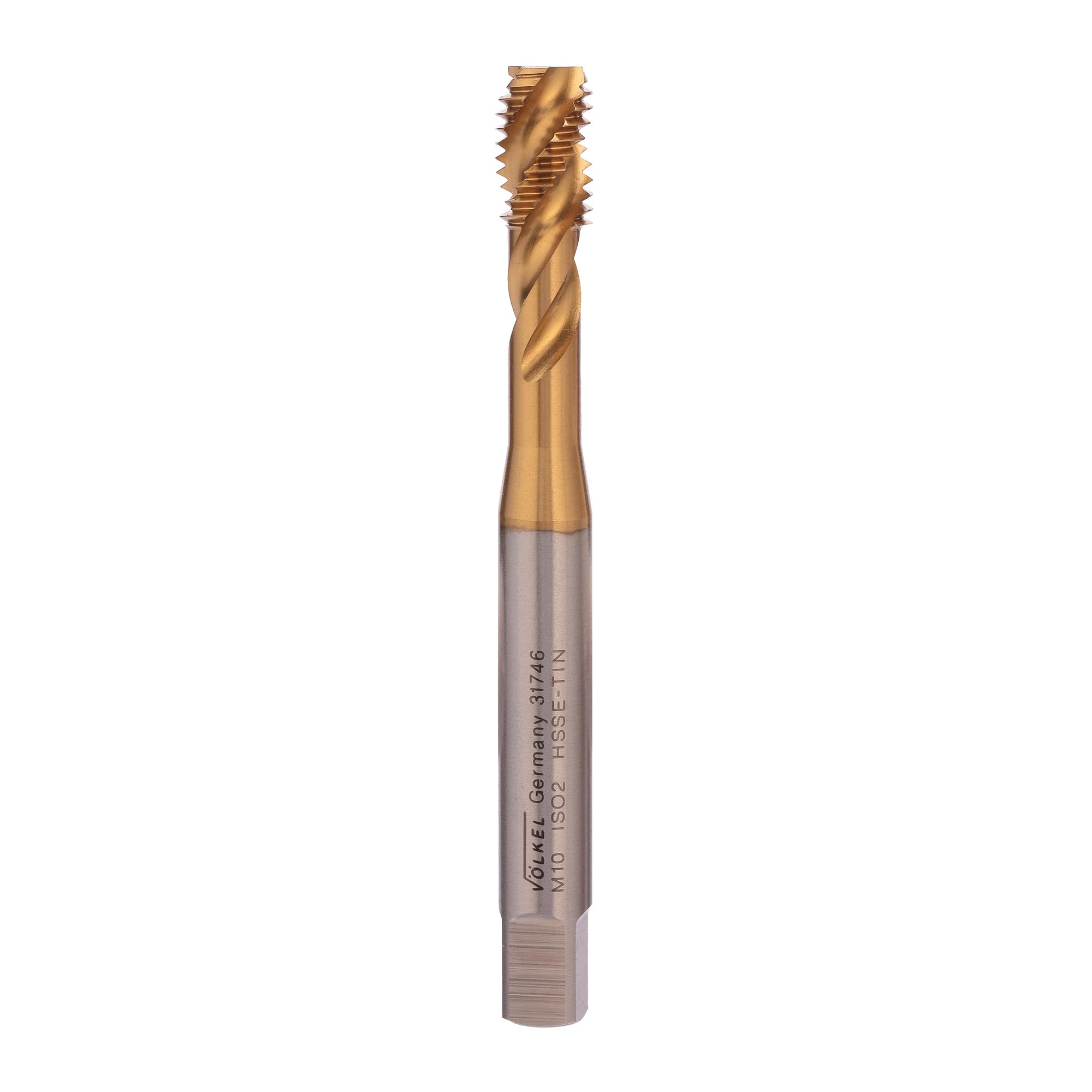 Метчик М10х1,5 (Машинный, винт.) DIN371 HSSE-TiN 6h C/2-3P R35 100мм a=8,0 Volkel 31746