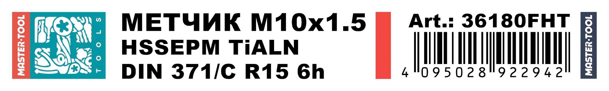Метчик М10х1,5 (Машинный, винт.) DIN371 HSSEPM-TiALN 6h C/2-3P R15 100мм a=8,0 H-Tools 36180FHT