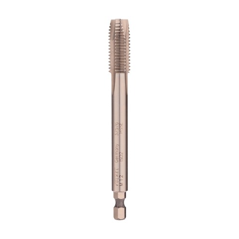 Метчик имеет 6-гранный хвостовик 1/4", что позволяет использовать в качестве держателя дрель-шуруповерт, а так же стандартные магнитные держатели для бит.
