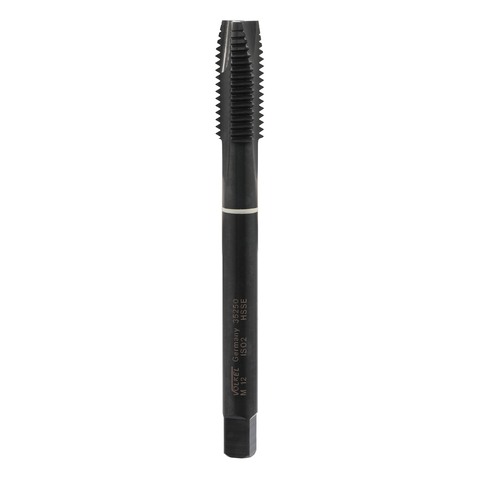 Подходит для обработки заготовок, выполненных из легированной и нержавеющей стали, чугуна, алюминия, меди, бронзы, цинка, с пределом прочностью до 1000MPa. Покрытие VAP (вапаризирование) снижает образование холодных наплавов и улучшает адгезию смазочных материалов на поверхности инструмента. Резьба нарезается за один этап, машинным или ручным способом. Форма заборной части B (4-5 нитки) - для сквозных отверстий. Специальная геометрия канавок ломает стружку в процессе работы, что позволяет вымывать мелкие частицы стружки из канавок при подаче СОЖ. Соответствует стандарту по DIN371, для машинных метчиков с усиленным хвостовиком.