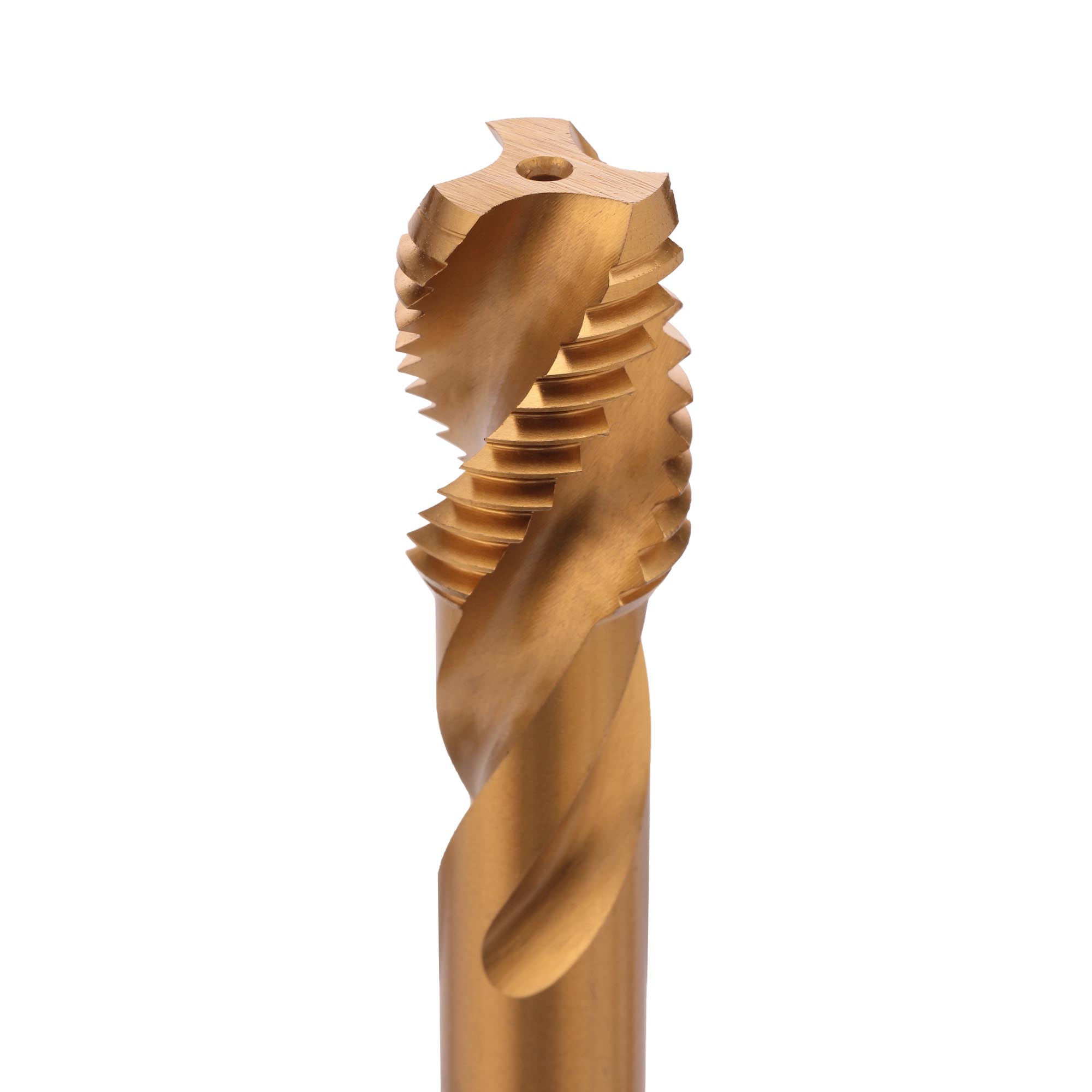 Покрытие TiN (нитрид титана) снижает энергоемкость, повышает надежность инструмента. Форма заборной части C (2-3 нитки) - для глухих отверстий. Высокие антифрикционные свойства и устойчивость к износу являются результатом пониженной шероховатости поверхности и повышенной твердости.