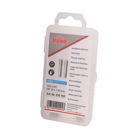 Метчик М18х1,5 (Комплект 2шт) DIN2181 HSS-G 6h 80мм a=11 Ruko 235180